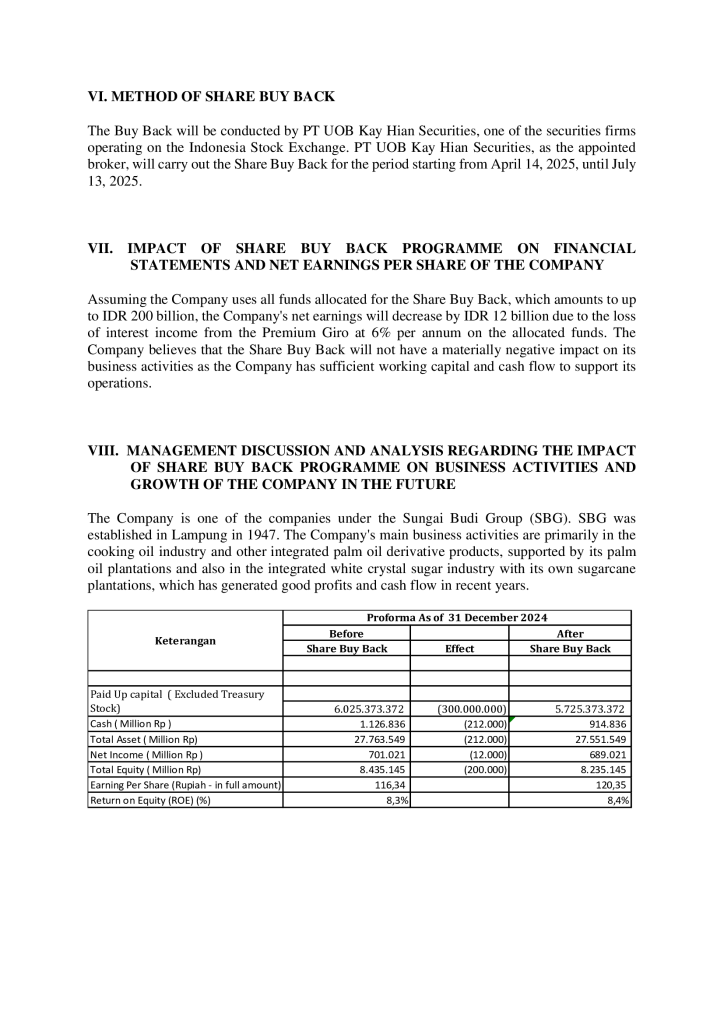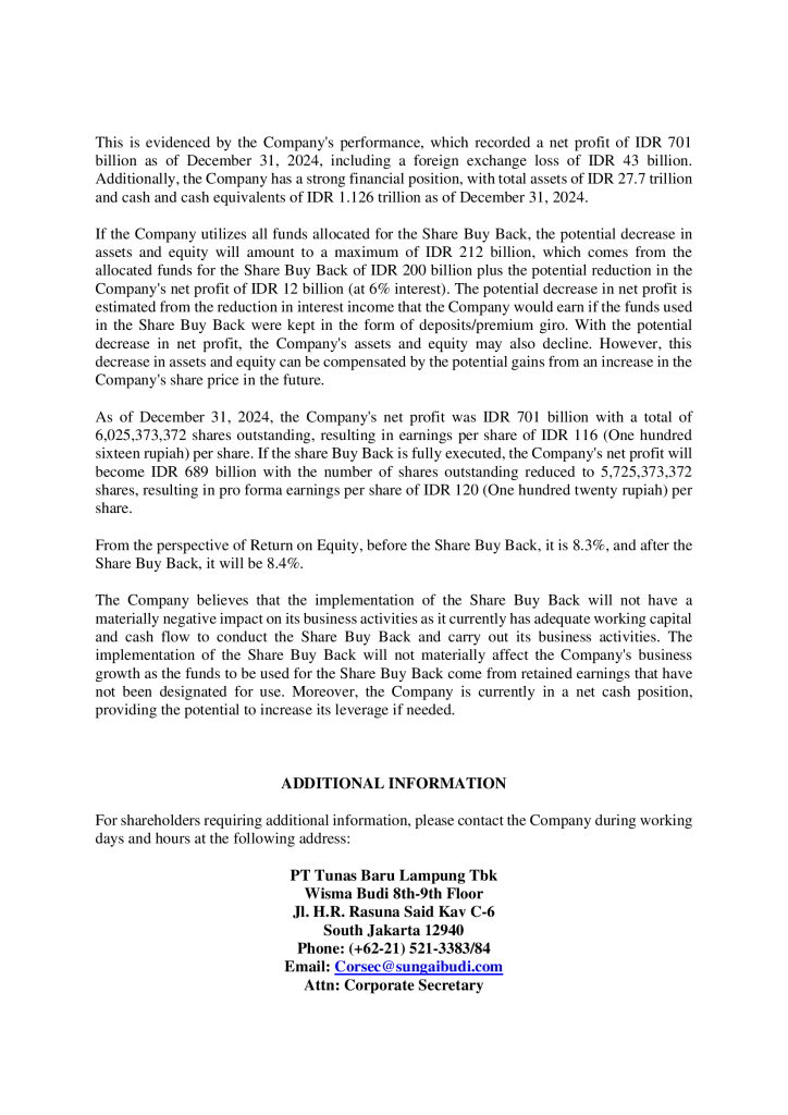 Announcement of the Buyback Plan Intended as Accelerated Repayment of Obligasi Berkelanjutan I Tunas Baru Lampung Tahap II Tahun 2020 Seri B