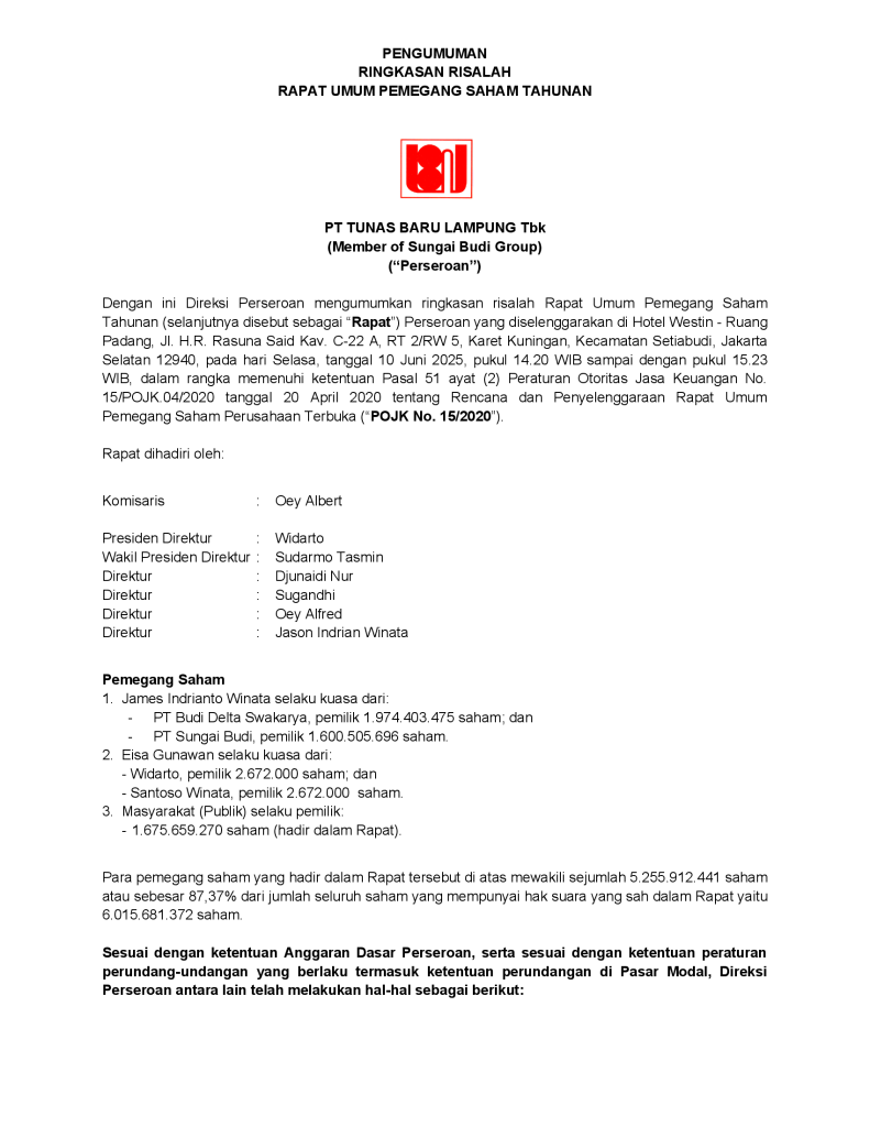 Ringkasan Risalah RUPS